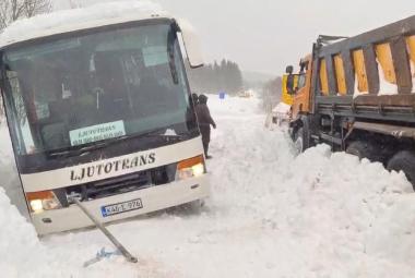 Dijelovi Krajine zatrpani snijegom: Pogledajte snimke zaglavljenog autobusa i automobila