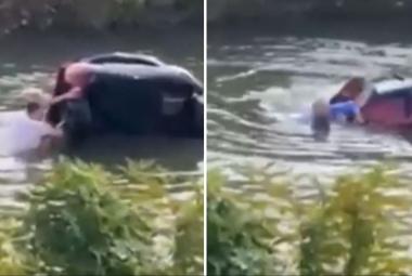Biznismen iz upao autom u rijeku, prolaznici skočili i spasili ga