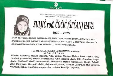 Na Ahiret preselila ALEŠEVIĆ HADŽI ĐULA rođ. SIJAMHODŽIĆ
