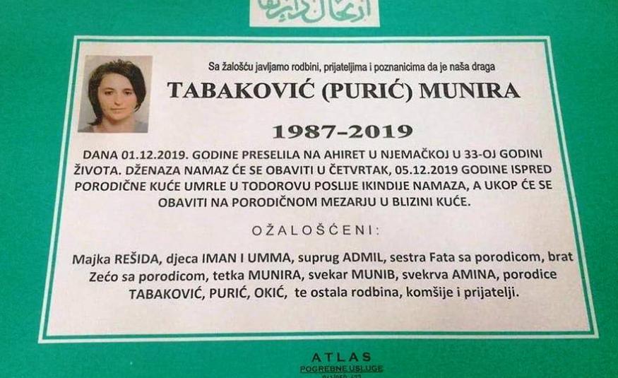 Na Ahiret preselila Tabaković (Purić) Munira