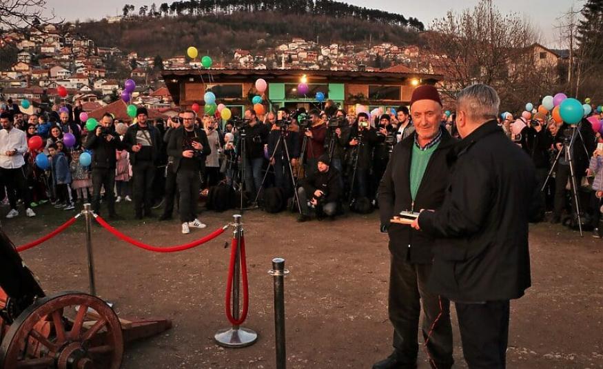 Tobdžija Smail Krivić već 26 godina najavljuje iftar: Općina Stari Grad mu uručila poklone