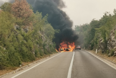 (FOTO + VIDEO) Vatrena stihija progutala automobil na putu Trebinje-Bileća: Požari u istočnoj Hercegovini prave velike probleme