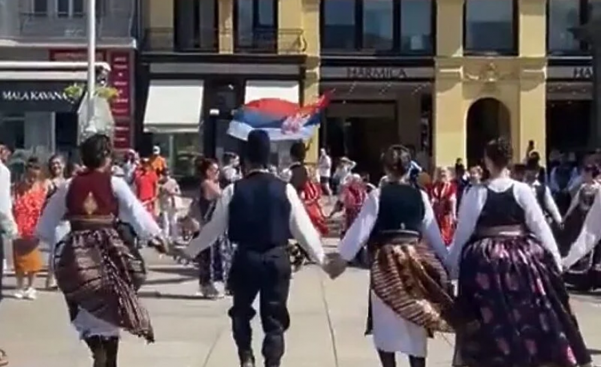 Smotra folklora u Zagrebu: Na Trgu bana Jelačića pleše se Užičko kolo i vijori srpska trobojnica