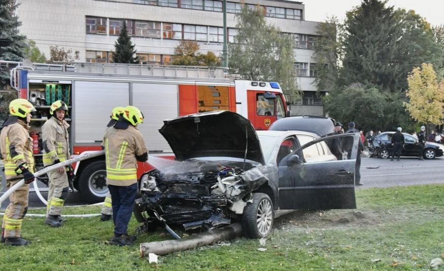 Težak udes u centru Sarajeva: Saobraćajni kolaps na Marijin Dvoru, auto se zapalio