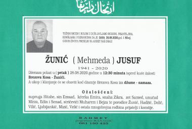 Na Ahiret preselio Žunić (Mehmeda) Jusuf