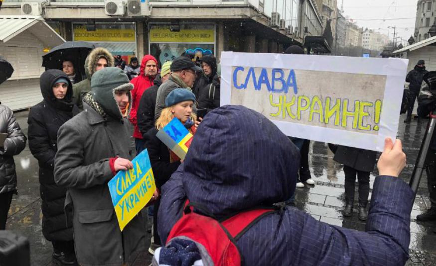Počeo skup podrške Ukrajini u centru Beograda, okupljeni spalili ruski pasoš