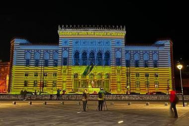 Vijećnica u bojama zastave Ukrajine, u petak protesti za mir kod spomenika ubijenoj djeci Sarajeva