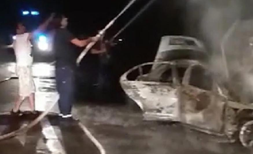 Automobil se zapalio na cesti, vatra se proširila na obližnje brdo (VIDEO)