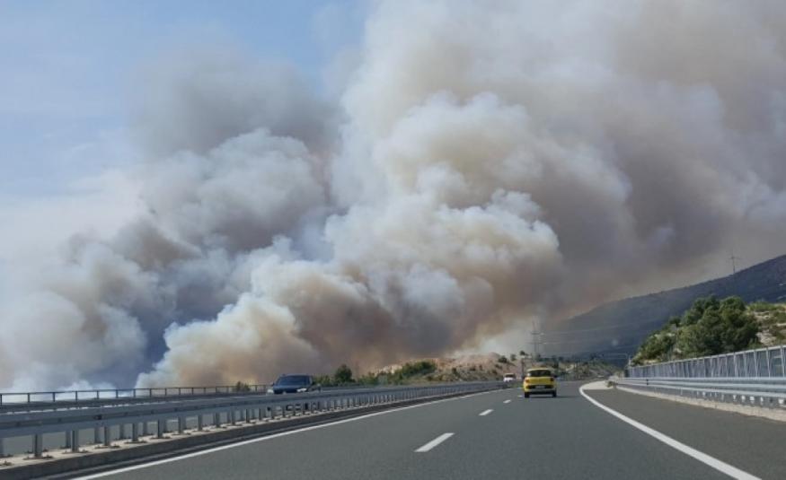 Dramatično kod Šibenika: Bukti veliki požar, obustavljen saobraćaj, desetine vatrogasaca i kanaderi na terenu