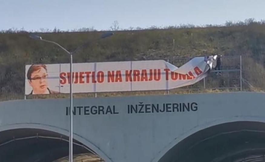 Popeo se na vijadukt na autoputu i skinuo transparent Vučića i Dodika (VIDEO)
