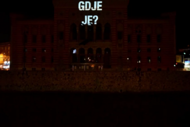 Sarajevska Vijećnica prekrivena pitanjem "Gdje su?"