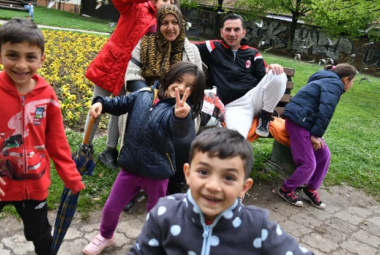 Grupa migranata u parku kod Vijećnice, građani im kupuju hranu i traže smještaj