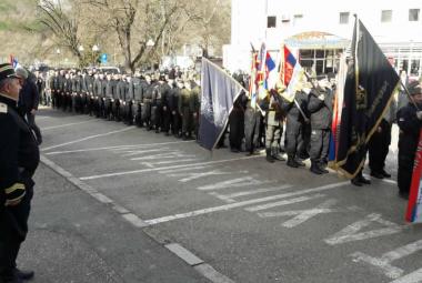 Višegrad: Postrojavanje četnika povodom 71. godišnjice hapšenja Draže Mihailovića