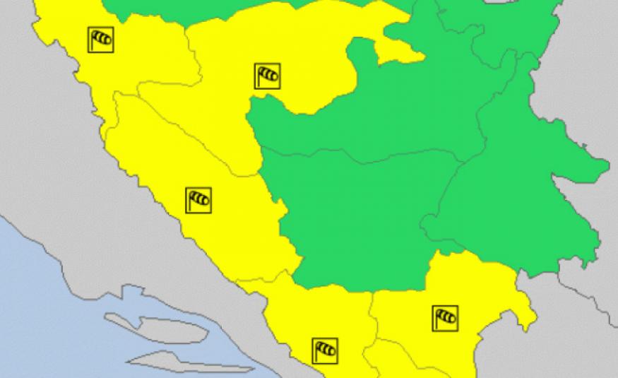 Bihać među šest gradova za koje je Federalni hidrometeorološki zavod objavio žuti meteoalarm