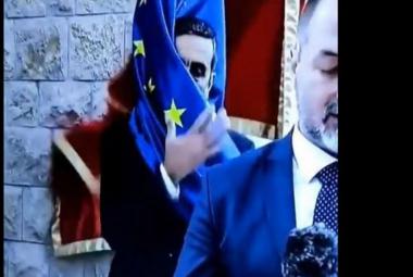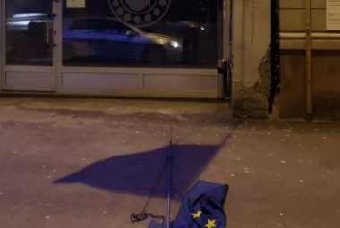 Potrgana zastava EU na zgradi Ambasade Hrvatske u Sarajevu
