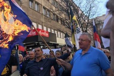 Šešelj zapalio zastave EU i NATO na skupu radikala u centru Beograda