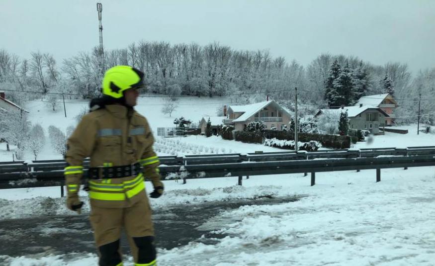 Saobraćajna nesreća na autoputu Zenica-Sarajevo, vatrogasci i policija na terenu