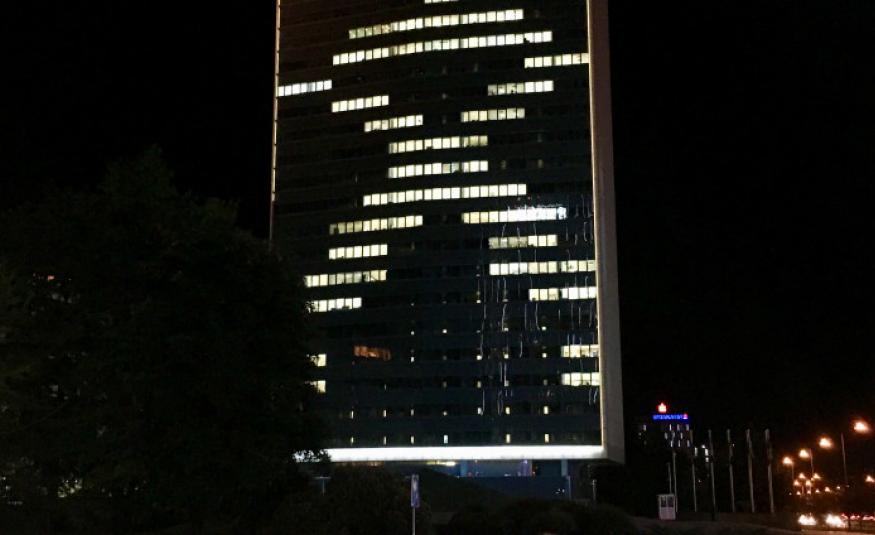Zgrada institucija BiH osvijetljena u obliku ‘Zlatne vrpce‘