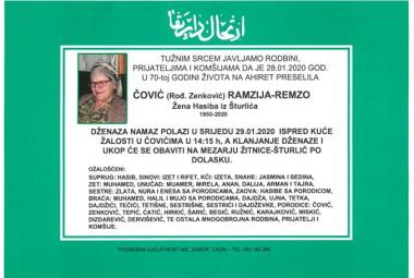 Na Ahiret preselila Čović (rođ. Zenković) Ramzija-Remzo