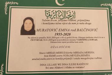Na Ahiret preselila Muratović (rođ. Balčinović) Emina