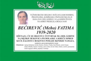 Na Ahiret preselila Bećirević (Meho) Fatima