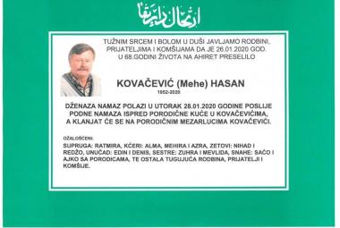Na Ahiret preselio Kovačević (Mehe) Hasan