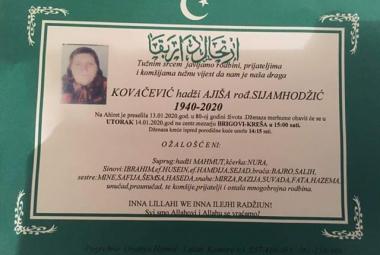 Na Ahiret preselila Kovačević (rođ. Sijamhodžić) hadži Ajiša