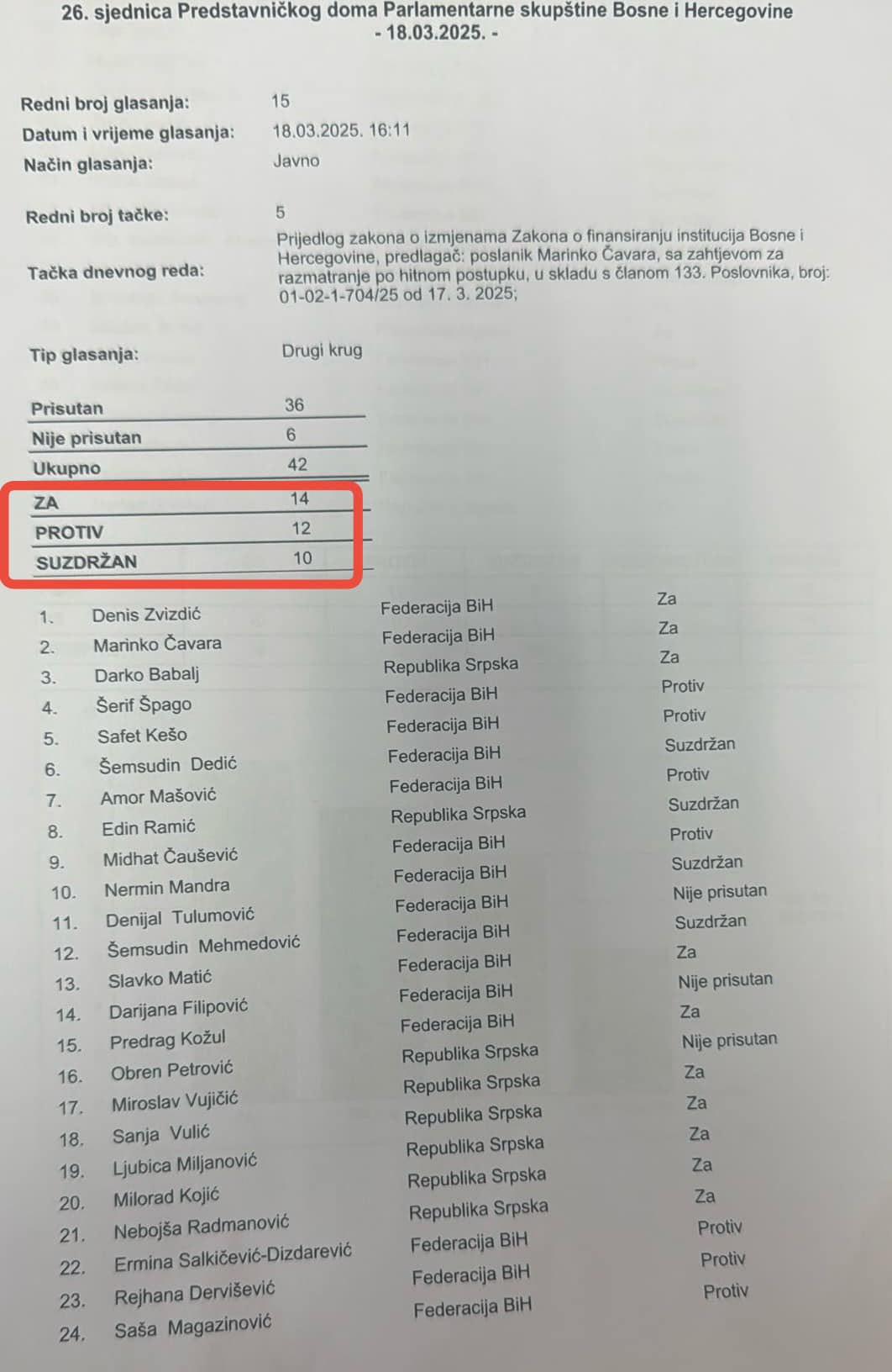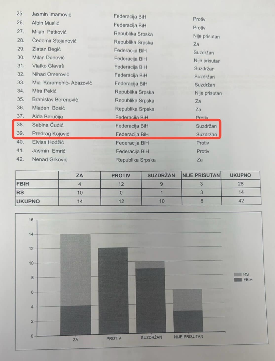 Ovdje se ne radi samo o političkoj krivici. S obzirom na ova pravila glasanja, koja su svakom poslaniku u PS BIH dobro poznata, suzdržanost predstavlja konkretnu podršku ovakvim aktivnostima i sankcionisanim subjektima i povlači za sobom potencijalne posijedice.