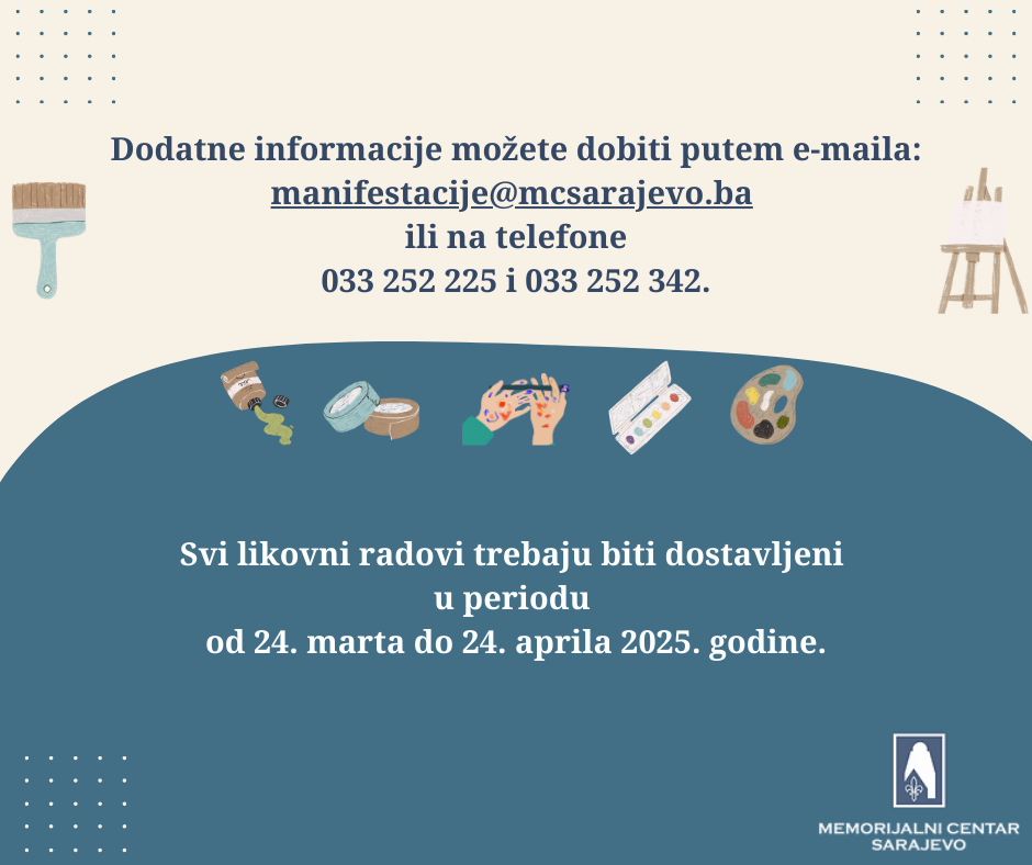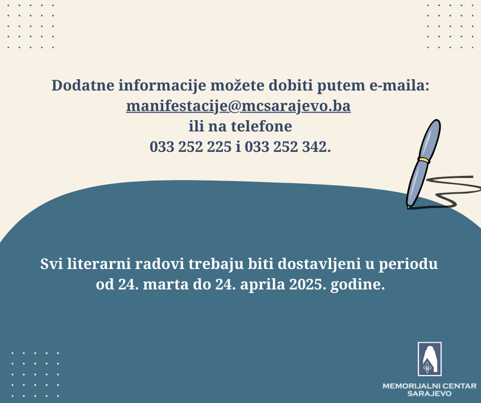 Dodatne informacije o Javnom pozivu dostupne su na web stranici Memorijalnog centra Sarajevo, ovdje: https://www.mcsarajevo.ba/dokumenti-akta-i-propisi/953f5996-80e0-41dd-92bf-db4b6e08429f