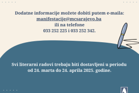 Za više informacija možete se obratiti putem: E-maila:manifestacije@mcsarajevo.ba ili telefona: 033 252 225 i 033 252 342