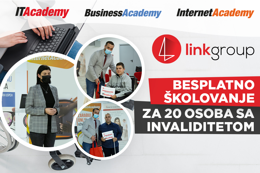 Kompanija LINKgroup, kao društveno odgovorna kompanija, svake godine jedan dio besplatnih školovanja, koja se realizuju onlajn, putem Platforme za učenje na daljinu, dodjeljuje osobama sa invaliditetom.