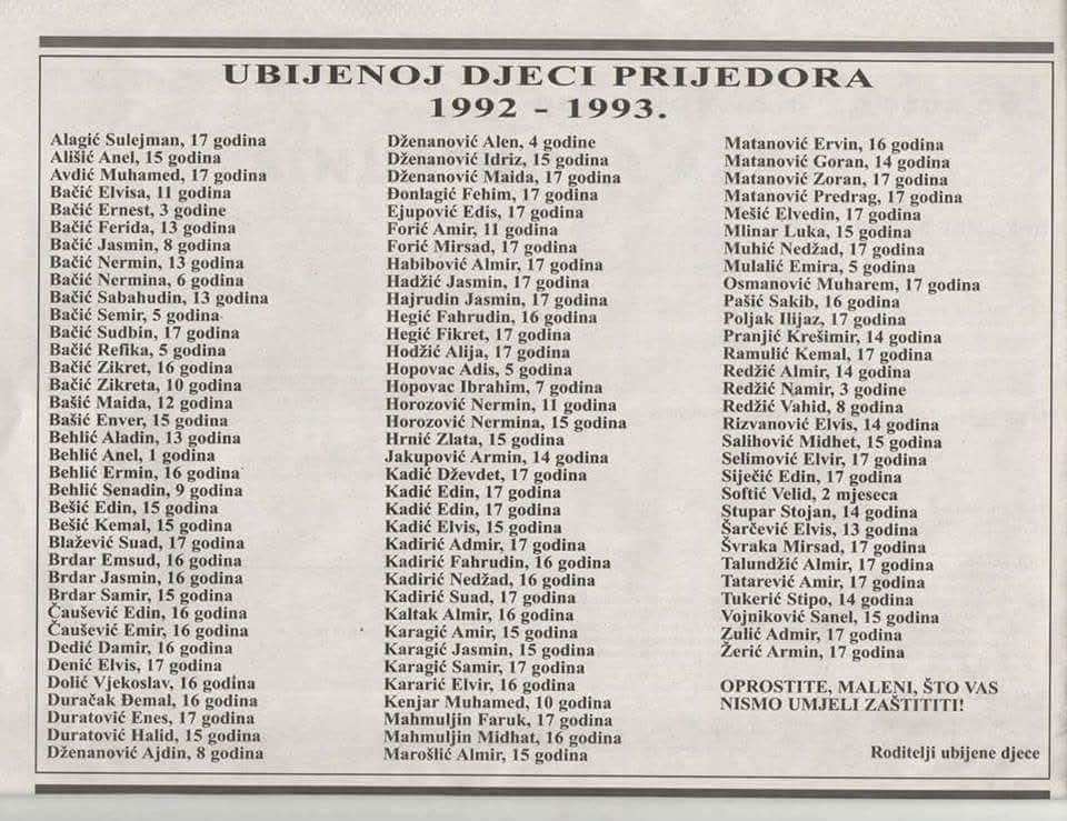 - Do danas, Prijedor ne dozvoljava ni spomenik ubijenoj djeci.