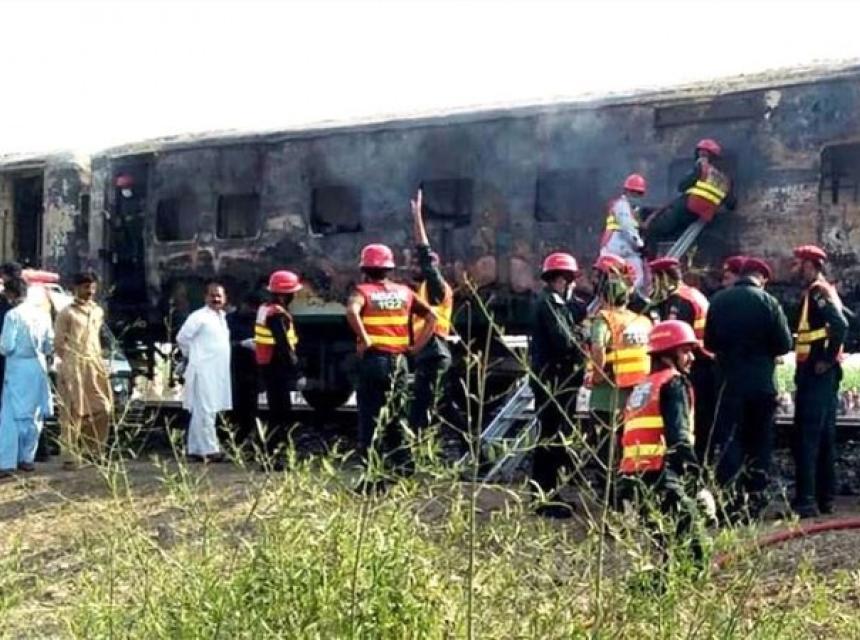 Policijski zvaničnik Amir Taimoor Khan saopćio je da se putnički voz zapalio u blizini distrikta Rahimayar Khan u provinciji Punjab.