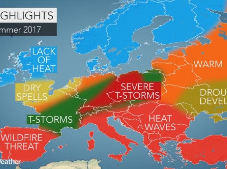 Dugi periodi toplog vremena, uključujući i nekoliko opasnih toplotnih talasa, obilježit će vremenske prilike tokom ljeta širom južne i istočne Evrope, objavio je AccuWeather.com.