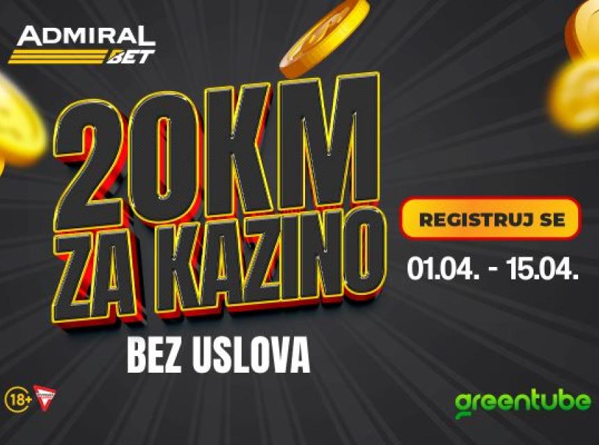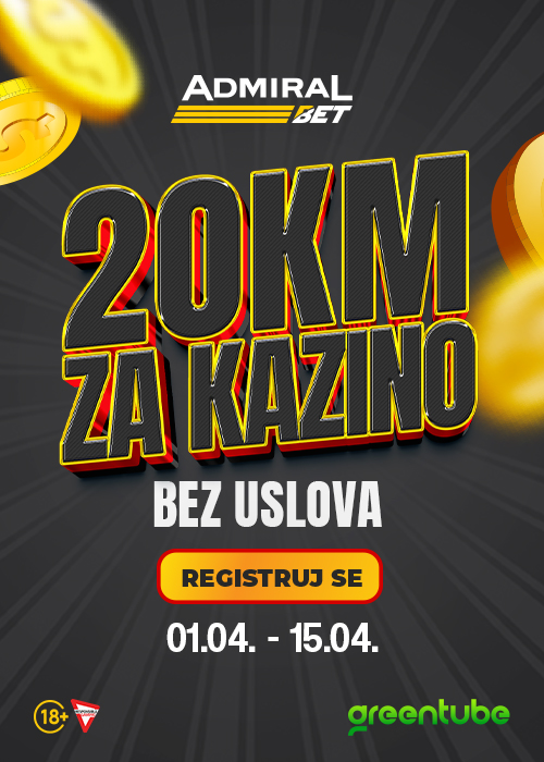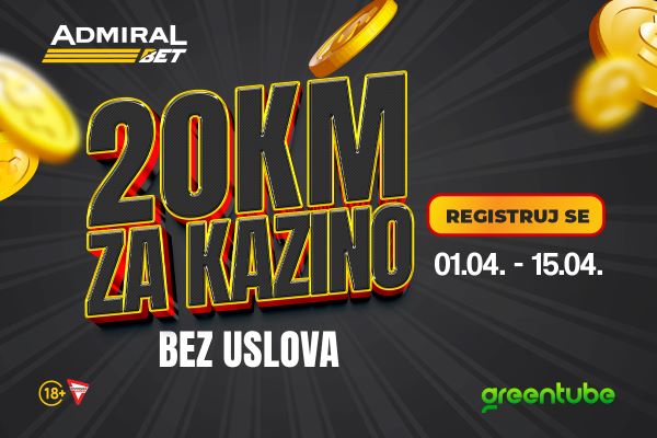 Najveći kazino bonus bez uslova i bez obaveznog depozita u BIH poklanja AdmiralBet sportska kladionica. 20 KM kazino bonusa je spremno! Zaigraj!