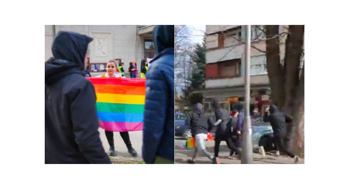 Što se i desilo te je izazvan incident prilikom šetnje. Kako su aktivistikinje, između ostalog, nosile i zastavu duginih boja, nekoliko mladića u tamnim duksevima i sa kapuljačama im je otelo zastavu, uzvikujući: "Ua, pederi!".