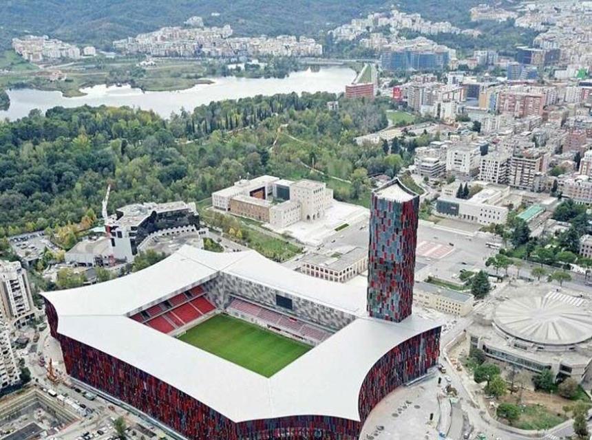 Arena Kombetere ili nacionalni stadion je izgrađen za tri godine i koštao je 50 miliona eura. Posebno je interesantan način na koji je zatvorena finansijska konstrukcija.