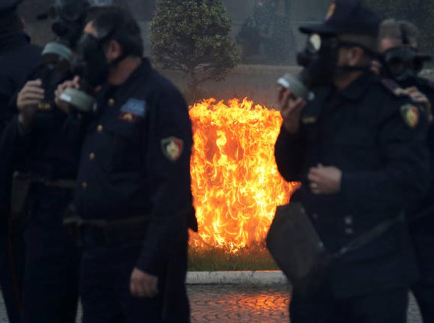 Pristalice opozicije, koje su se okupile ispred glavne zgrade vlade, bacale su petarde, molotovljeve koktele i druga pirotehnička sredstva, prenosi Tanjug.