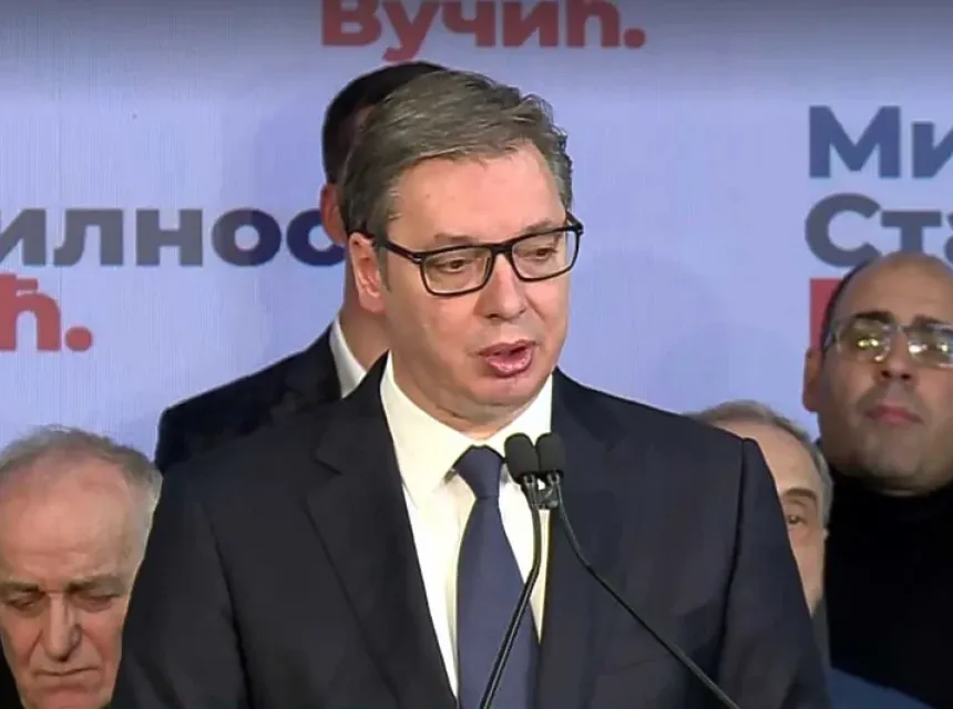 Predsjednik Srbije Aleksandar Vučić i kandidat SNS-a za predsjednika Srbije na izborima koji su održani danas, proglasio je pobjedu.