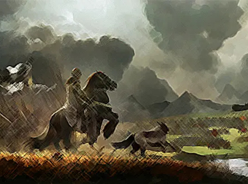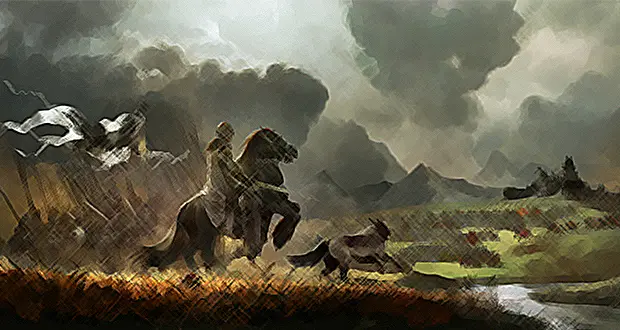 Vidno ohrabren time što niko nije otišao, bacio je svoj luk i strijelu, uzeo mač i buzdovan i zauzdao konja. Obukao je bijelu odjeću, namirisao se i rekao “Ako budem ubijen, neka ovo budu moji ćefini.”