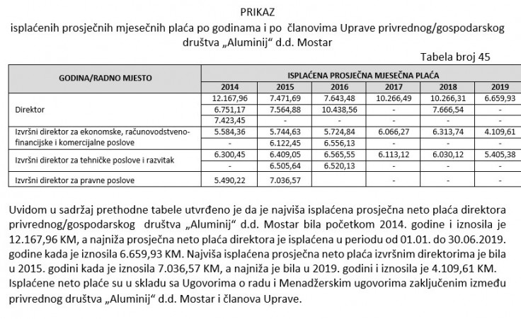 Godinu kasnije plaća je smanjena s 12.167 na 7.471 KM, a da bi od 2017. i 2018. iznosila 10.266 KM. Izvršnim direktorima plaća se kretala od 5.500 do 6.300 KM.