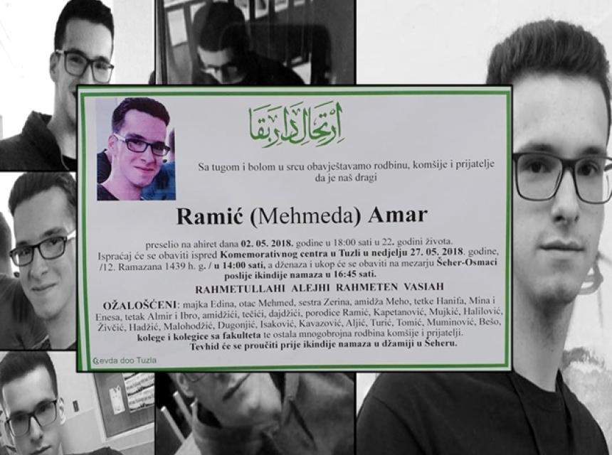 Posljednji ispraćaj dvadesetdvogodišnjeg Tuzlaka Amara Ramića, za kojim je 23 dana duga potraga okončana tragično, bit će obavljen u nedjelju 27. maja ispred Komemorativnog centra Tuzla u 14:00 sati. Dženaza i ukop obavit će se istog dana u 16:45 na mezarju Šeher-Osmaci.
