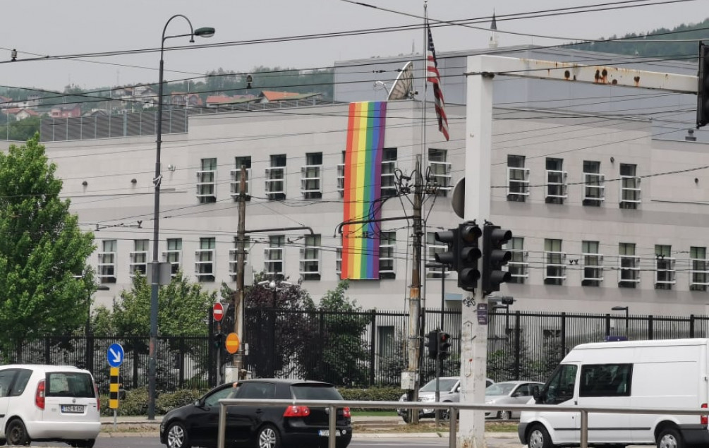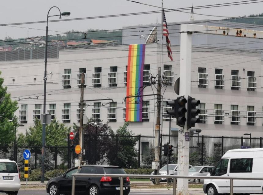 Na zgradi Ambasade Sjedinjenih Američkih Država u Sarajevu danas je postavljena Zastava duginih boja koja je simbol zajednice LGBT-a koji se koristi od 1970-ih.