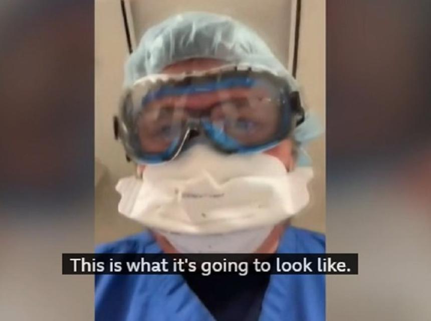 LIJEČNIK iz Missourija objavio je video u kojem simulira što bi mogli biti posljednji prizori koje vide pacijenti koji umiru od koronavirusa, javlja BBC.