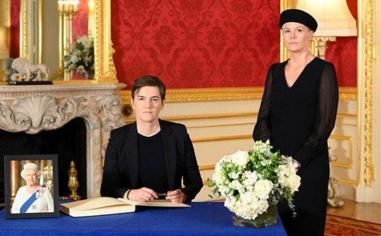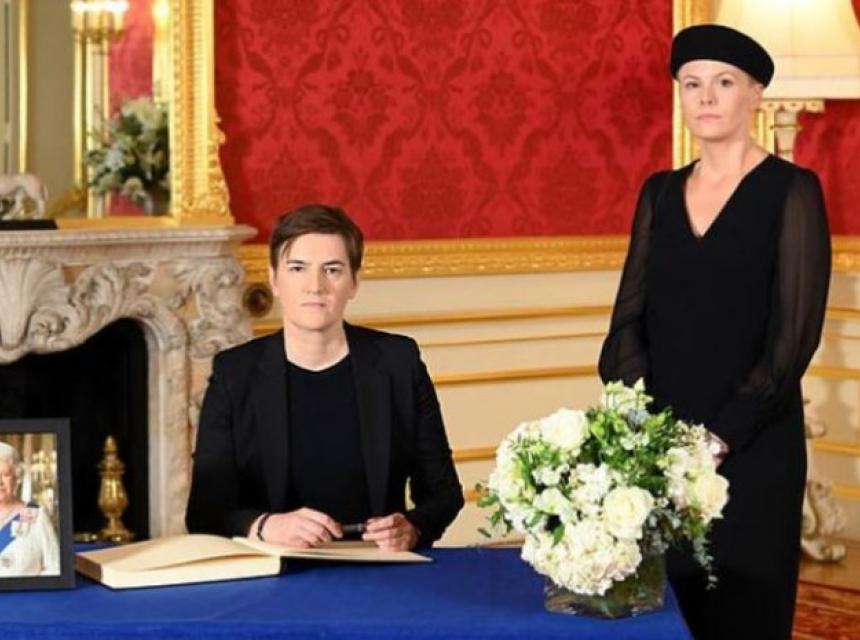 Ana Brnabić otišla je u London u pratnji svoje partnerica i tom prilikom se upisala u knjigu žalosti povodom kraljičine smrti. Njihove odjevne kombinacije bile su odraz protokola.