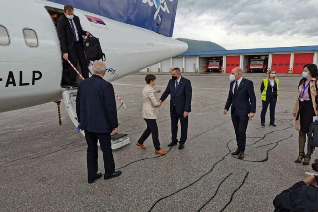 Ministri u Vladi Srbije, na čelu sa premijerom Anom Brnabić, doputovali su jutros na sarajevski aerodrom, nakon čega su otišli u Administrativni centar Vlade Republike Srpske u Istočnom Sarajevu, gdje će biti održana zajednička sjednica vlada.