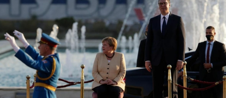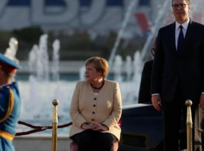 Pored nje predsjednik Srbije Aleksandar Vučić je jučer stajao tokom izvođenja himne. Angela Merkel danas je u posjeti Albaniji, a dočekao je premijer Albanije u Tirani.
