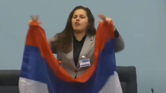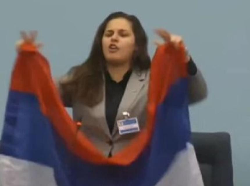 Na kraju je pokazala zastavu RS i rekla da je to njena zastava, a da je zastava Nebojše Vukanovića ona s ljiljanima.