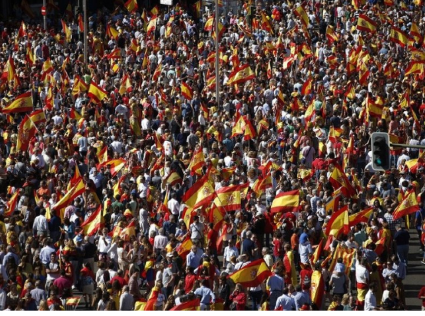 U međuvremenu, u Madridu, paralelno s maršom nazvanim "Razgovarajmo", hiljade ljudi okupilo se ispred ogromne španske zastave na trgu Colon Plaza mašući zastavama i uzvikujući "Živjela Španija" i "Živjela Katalonija".