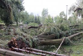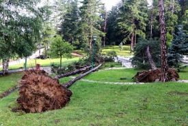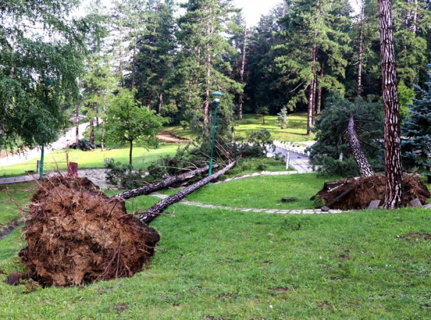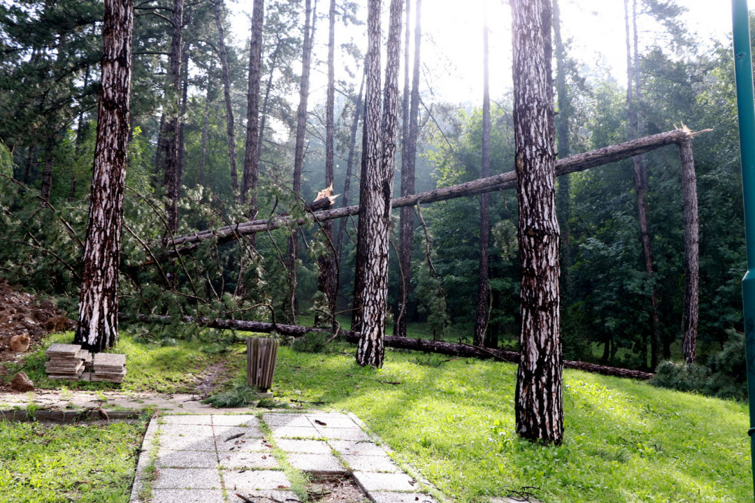 Vjetar je polomio mnoga stabla koja su, osim presijecanja šetališne staze, posebnu štetu nanijela i na spomen-mezarju Slana banja na kome su sahranjeni Tuzlaci ubijeni na Kapiji 25. maja 1995. godine.